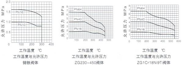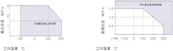 軟閥座型  工作溫度與最大壓差范圍                                     司太萊合金堆焊閥座  工作溫度與常用壓差范圍